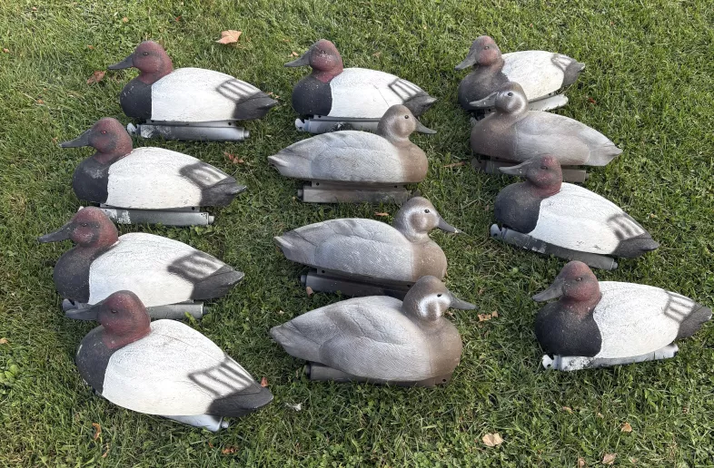 Good condition foam filled canvasback decoys no weights