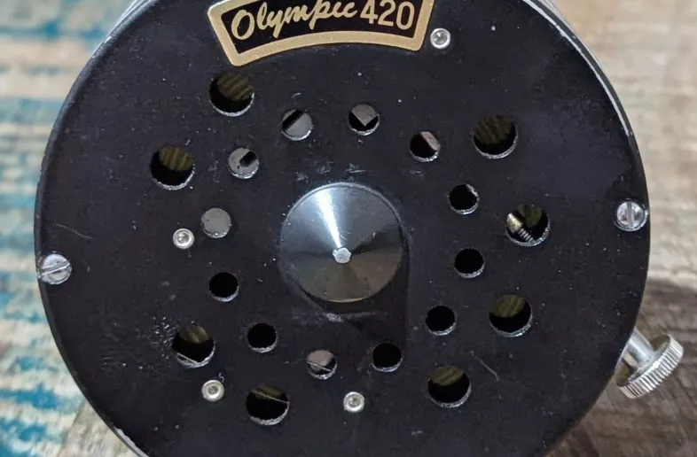 Vintage Olympic 420 fly fishing reel, made in Japan circa 1960s–70s.
