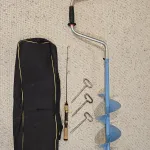 Selling as a set one Normark Swede-Bore 8 inch manual ice auger with blade protector. Length is adjustable. Three metal ice anchors, one ice fishing rod carrying case and one ice fishing rod. All items in very good shape. Local sale only