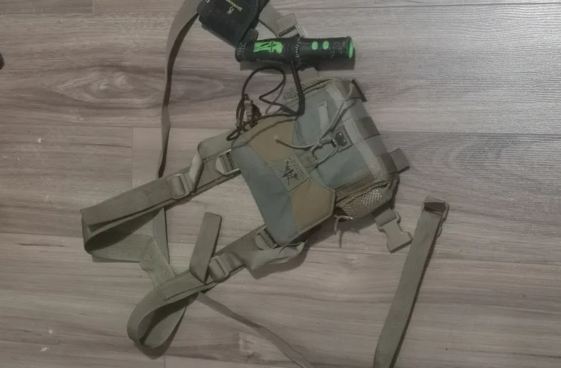 FHF Medium Bino Harness, well taken care of and in good working order. Can include mesh padding for extra $15. Hunting gear is easily attached and has pockets for tags and maps etc.