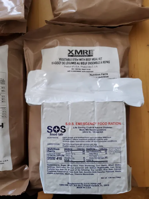 9X MRE packs plus food ration bars