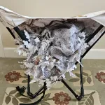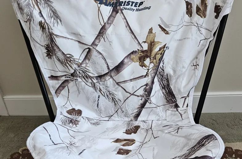 White camouflaged predator/game hunting chair. Folds away for easy storage. Very comfortable to sit in and has a large camouflaged netting to really conceal you. Also works for regular game hunting where you can disguise yourself accordingly. Light and portable. I no longer hunt so no longer require this. It's in very good shape with no rips or tears. Local sale preferred.