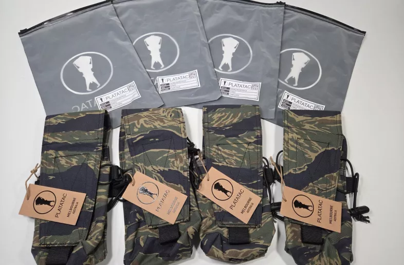 New condition in original bags. 4x Platatac Double M4/AK Pouches in Vietnam Tiger Stripe.