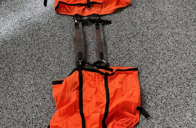 Fits over your head with straps on your shoulders and meat pack both front and back.