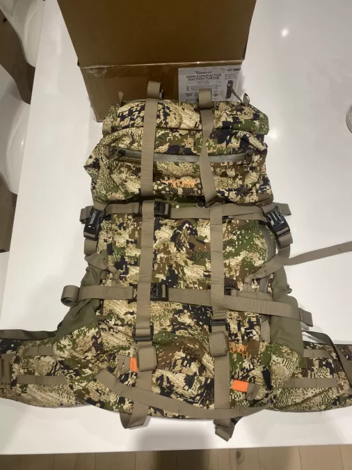 Mystery Ranch Metcalf 50 and sawtooth 45, both in Sitka subalpine pattern. Both on medium frames.