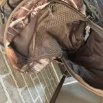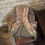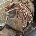 Has storable rain cover and lots of pockets as well as chest clip and hip belt