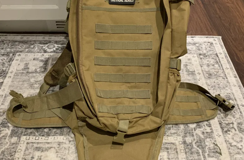 The is a heavy duty tactical pack with a pouch for a rifle in it as well. I only used it a couple times so it’s in new condition. I just don’t use it as much as I thought I would so I’m selling to let someone else get some use out of it.