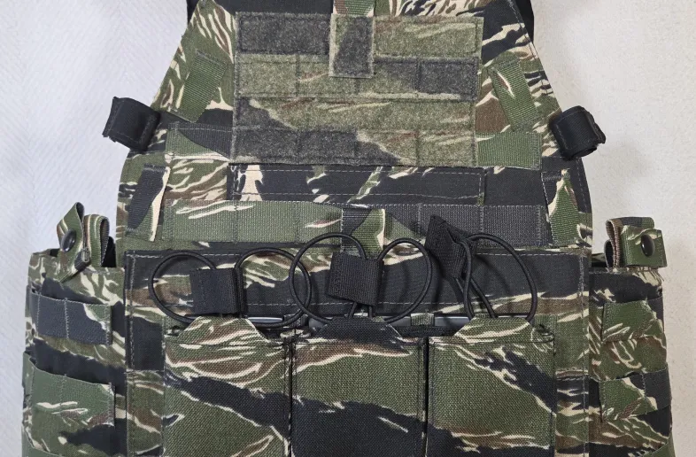 Brand new. LBT no longer offers this plate carrier in Tiger Stripe. Includes a limited edition Wilde Custom Gear triple AR magazine (3x1) MOLLE panel
