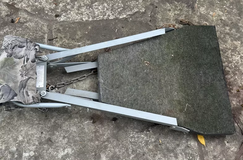 Vintage lightweight lock on treestand , great shape except seat fabric a bit worn. 4 muddy pro climbing sticks with amsteel rope with bungee ends and 3 sticks have amsteel aiders