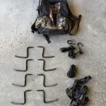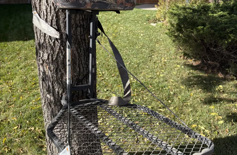 Gorilla Tree Stand, like new condition. Comes with stand, fall harness, 8 climbing pegs, extra support straps, aprox 20’ of tree ladder and small duffle for accessories.
