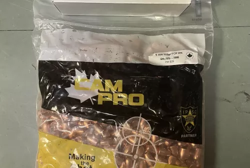 205.00 Campro 9mm Bullets and Primers Kit Oct 26, 2025 - 1:09 PM nick.baseball New/Unopened packs of bullets and primers. 115gr FMJ 9mm projectiles