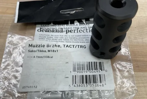 200.00 Sako TRG .338 Muzzle Brake, M18 X 1 thread Feb 22, 2026 - 8:31 PM LivelyGuy Sako TRG .338 muzzle brake, M18 x 1 thread.