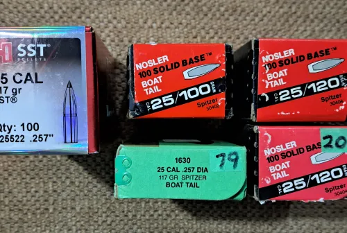 160.00 257 Cal Bullets Jan 5, 2026 - 11:16 AM oiljack Hornady 100 gr BT 100 count, Nosler 100 gr BT 100 count,
