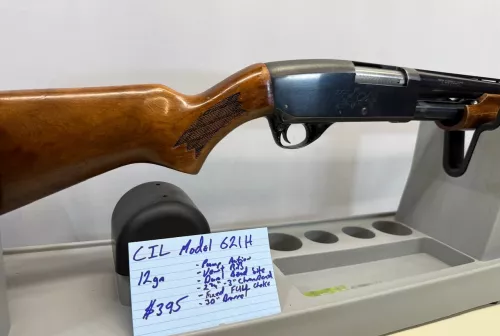 395.00 CIL Model 621H Oct 26, 2025 - 4:00 AM Lenore CIL Model 621H in 12 ga pump action in good condition.