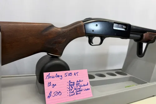 500.00 Mossberg Model 500AT Jan 3, 2026 - 11:50 AM Lenore Mossberg Model 500AT in 12 ga pump action in Very Good Condition with usual minor hunting marks.