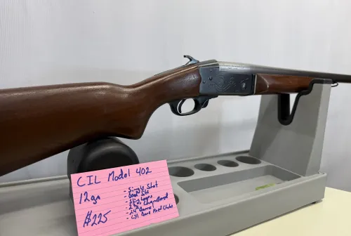 225.00 CIL Model 402 Jan 3, 2026 - 12:25 PM Lenore CIL Model 402 In 12 ga single shot in good condition.