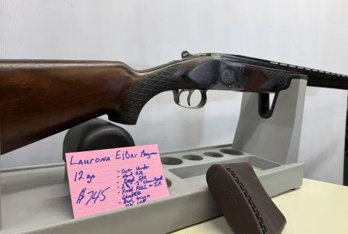 745.00 Laurona Eibar Magnum Jan 12, 2026 - 9:13 AM Lenore Laurona Eibar Magnum in 12 ga Over Under in good condition has bluing carry wear and typical hunt