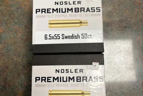 95.00 Nosler 6.5x55 Swedish Brass 50 ct Feb 23, 2026 - 8:31 AM Fulcrum Outdoors 2 available Can ship No trades