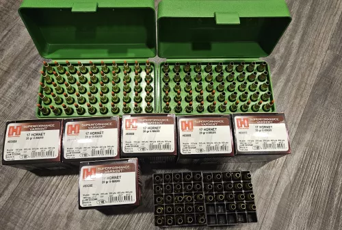 600.00 17 Hornet ammo and brass Sep 11, 2025 - 7:24 PM Dirtymx The following is up for grabs -215rds of Hornady Superformance 20gr V-max $350