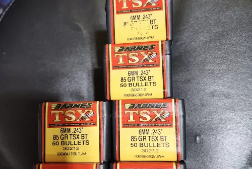 375.00 Barnes TSX 85GR 6MM Sep 24, 2025 - 1:32 PM Longrange1 I have 6 new boxes of Barnes TSX 85GR 6MM four of same lot number other two differen
