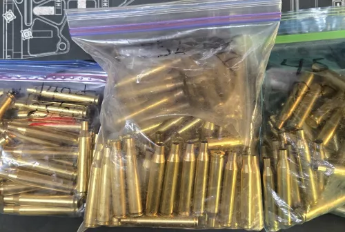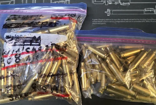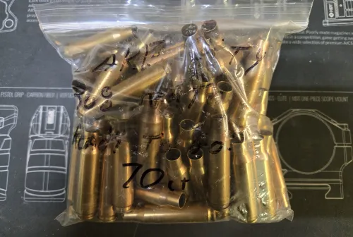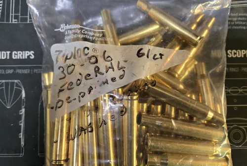 61 pieces of Federal 1x fired brass. De-primed, tumbled, chambered.