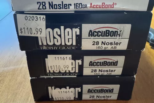 350.00 Nosler Trophy Grade 28 Nosler Sep 1, 2025 - 6:26 PM Hgoss2003 I have 4 boxes of factory Nosler Trophy Grade 160gr Accubonds for a 28 Nosler I’m asking $350.00
