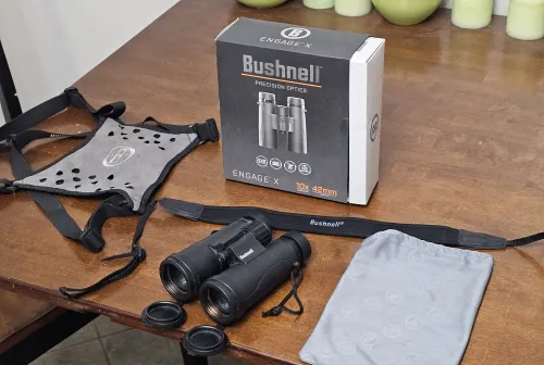 150.00 Bushnell Engage X 10x42mm Binoculars with extra bino chest harness. Jan 9, 2026 - 5:45 PM KingstonOnt9 Good used condition.