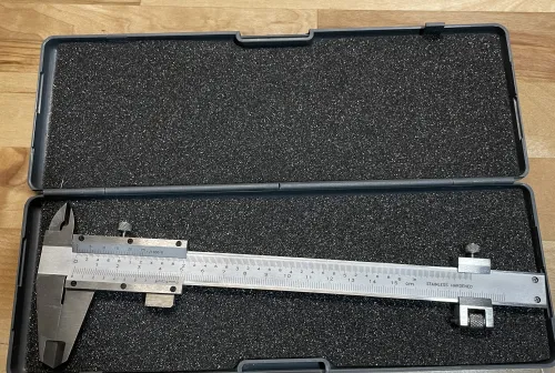 15.00 Vernier Caliper Apr 27, 2026 - 8:21 PM Long Range Engineer Stainless steel 6” fine adjustment imperial/metric caliper. Never used. From Lee Valley.