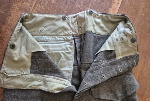 50.00 Vintage Cdn Army Wool pants Apr 26, 2026 - 12:38 PM 2704u Vintage Cdn Army Wool Battledress trousers Date stamped 1953 size 8 34 x 29