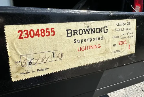 3000.00 Browning Superposed Lightning 20ga Skeet Apr 9, 2026 - 6:27 PM 25_Straight Browning Superposed Lightning 20ga Skeet. Guns barrels are 28” and choked SK.