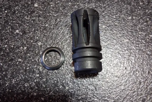 SOLD 35.00 .22lr muzzle break. Mar 12, 2026 - 2:56 PM Cmhiltz For sale. Muzzle Break. Came off a .22lr. 1/2×28. Approx. 100rds through it. $35.00 local.