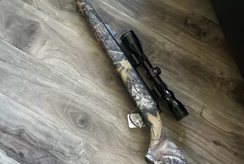 Savage Rifle 22-250 With 3x9x40 WA scope , swivel kit and sling, Camo Syn. Stock, Will ship