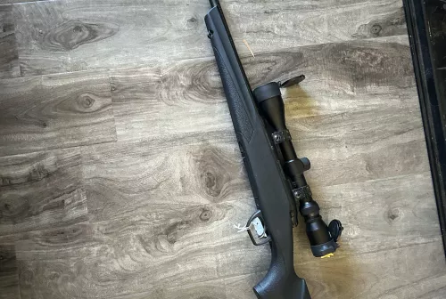 Savage Left Hand 7MM Rem Mag with steel Rings and New Scope 3x9x40WA, Wood Stock and blueing is i