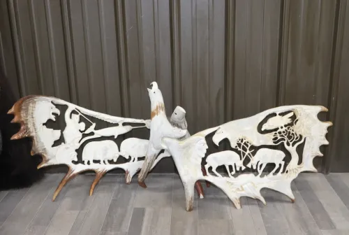 2000.00 Carved Set Of Moose Antlers Mar 20, 2026 - 2:54 PM Donna Hand carved set of Moose antlers Were carved by artist C.DVEW in June of 2017