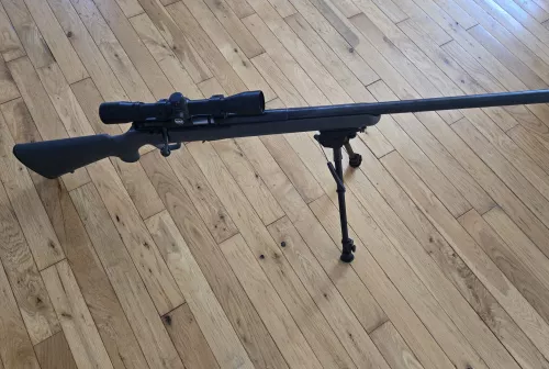 450.00 Savage Model 310 in . 17HMR Oct 5, 2025 - 5:18 AM Patamaran .17 HMR, bull barrel, Comes with a Bushnell scope and a bipod.