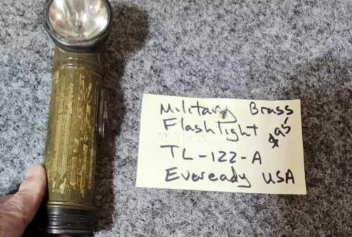 85.00 Eveready Flashlight TL-122-A USA Military Sep 15, 2025 - 7:47 AM AMF EVEREADY USA brass military flashlight...Used by Military Paratroopers as per information on line