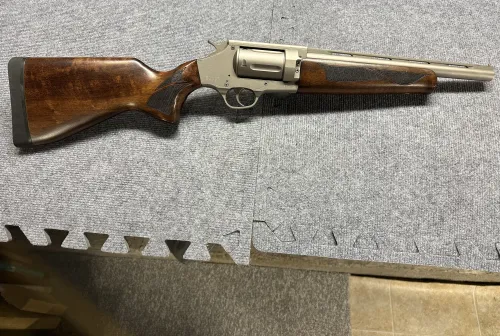 850.00 SULUN ARMS SR 410 Apr 1, 2026 - 8:29 PM Viking35 Sulun SR 410 compact revolver shotgun, in satin nickel finish.