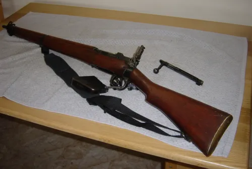 1200.00 303 ENFIELD 'FULL WOOD' NO 4 MK2(F)- ALL MATCHING ! Apr 28, 2026 - 3:06 PM wally willy MARKED '' 8/53 ' AND SERIAL NUMBER PF302775 ON RECEIVER , BOLT, AND MAGAZINE !