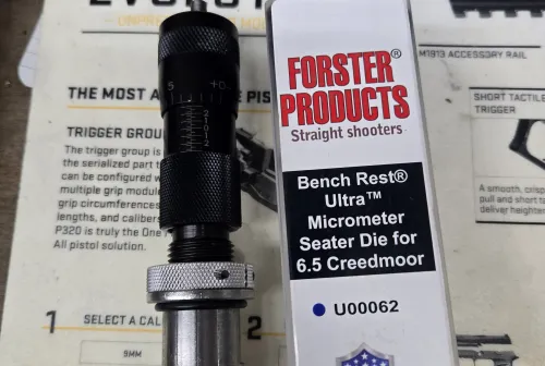 160.00 FORSTER MICROMETER Seating die Jan 6, 2026 - 6:27 PM Mac5523 Selling my Forster 6.5 Creedmoor Micrometer Seating die that was bought a month ago.