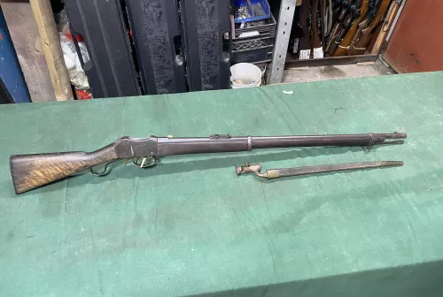 1250.00 Martini Henry original rifle. No license required Nov 18, 2025 - 8:35 AM Aaron 6 1876 mark II British war dept stamped.