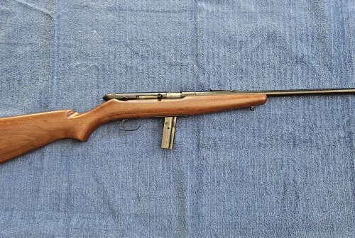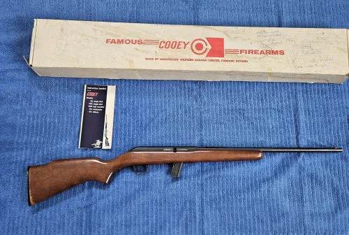 280.00 Cooey Model 64 With Box Feb 28, 2026 - 6:26 PM Active Shooter Here we have a Cooey Model 64 22LR semi auto in overall good condition.