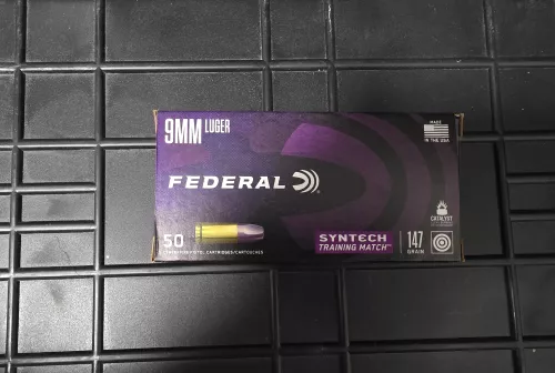 26.00 Federal 9mm 147gr Syntech training match Oct 15, 2025 - 9:16 PM JAY-G High quality 147gr 9mm ammo, clean and accurate. $26/case,$250/10 case