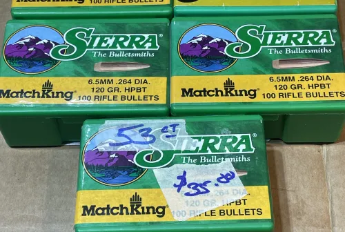 60.00 Sierra MK HPBT 120gr .264 - reduced Feb 3, 2026 - 1:22 PM Chickenpoxcharlie Four unopened boxes of 100 at $60 ea I box 53 at $30