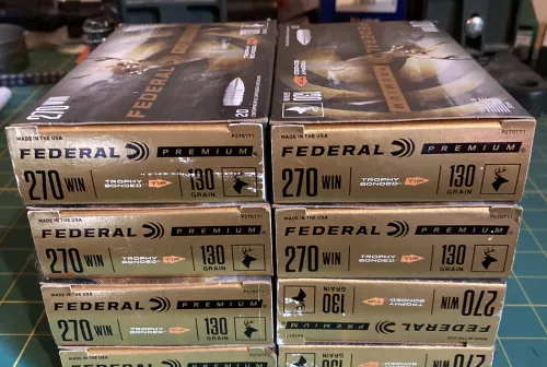 55.00 270 Winchester Federal Ammo Sep 25, 2025 - 9:01 PM crockafellow 8 boxes of 270 win 130 trophy bonded. $55 per box or $400 for the lot.