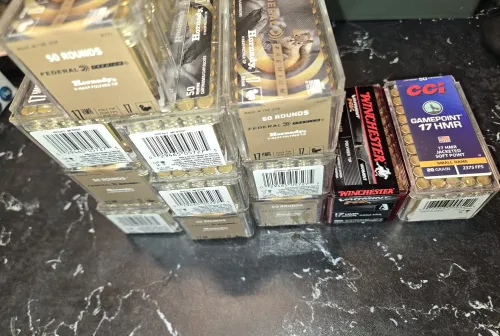 SOLD 25.00 Sold pending$25 each 12 boxes 17 hmr sealed boxes of 50 Apr 26, 2026 - 9:47 PM Robberduck PendingAll offers considered. If sold all together will he discounted.