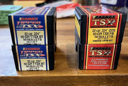 40.00 New price - 22cal Barnes Hunting Bullets Mar 7, 2026 - 9:16 AM canuck65 2 sealed boxes of each available: TSX 53gr FB - $40/box TTSX 55gr BT - $40/box