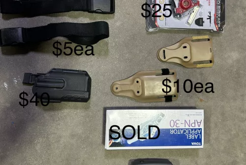 1234.00 Holster, timers, pouches, range gear Sep 6, 2025 - 11:19 AM Grip-it-and-rip-it Have a bunch of range gear i am getting rid of. These items are prices to sell.