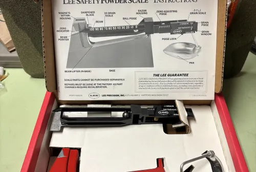 55.00 POWDER SCALE Mar 2, 2026 - 10:31 AM Hunter2012 NEW IN BOX WITH INSTRUCTIONS SAFETY POWDER SCALE BY LEE PRECISION, MAGNETIC DAMPENING, LIFETIME A
