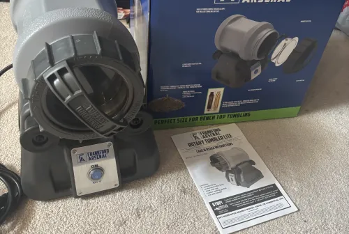 160.00 FRANKFORD ARSENAL TUMBLER Mar 8, 2026 - 10:28 AM Hunter2012 LIKE NEW FRANKFORD ARSENAL ROTARY-TUMBLER FOR DRY OR WET TUMBLING FOR ALL BRASS CASINGS CLEANING