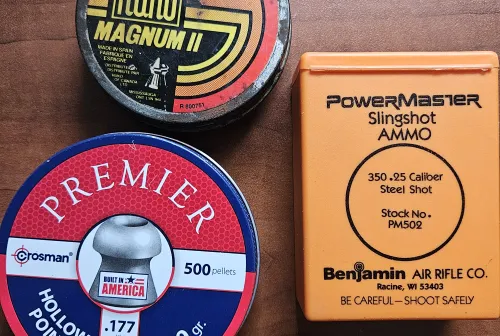 15.00 Misc Stuff Jan 4, 2026 - 10:38 PM cz52 1xBox of .177/4.5mm pellest, 1xBox of .22/5.5mm pellets, 1 box of .25 cal slingshot ammo.